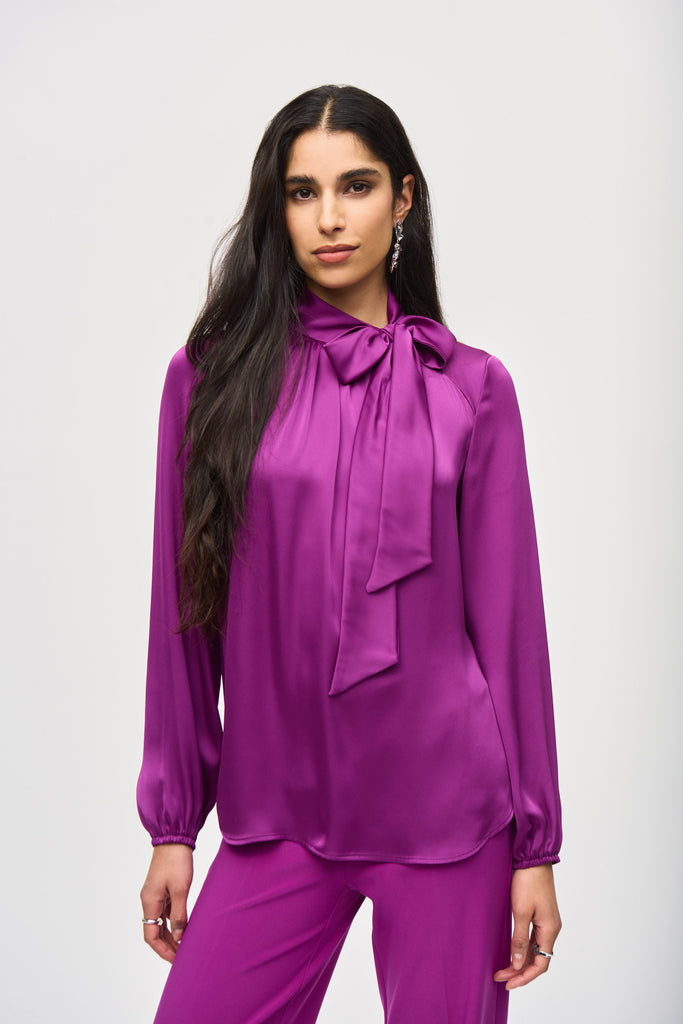 Joseph Ribkoff Women's Satin Top With Bow Neckline